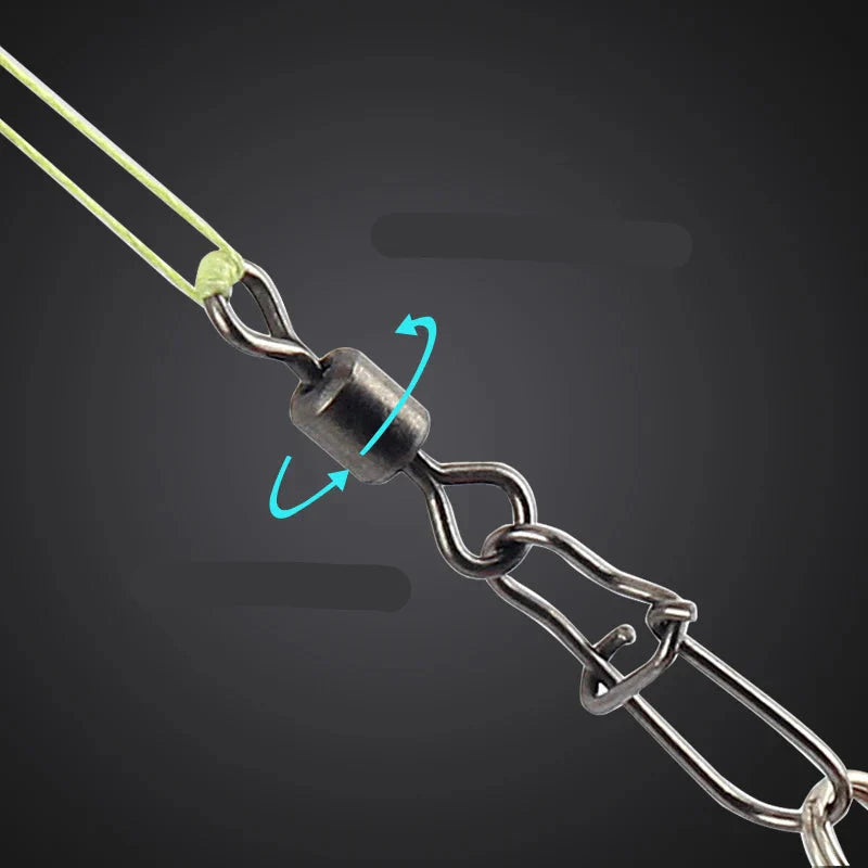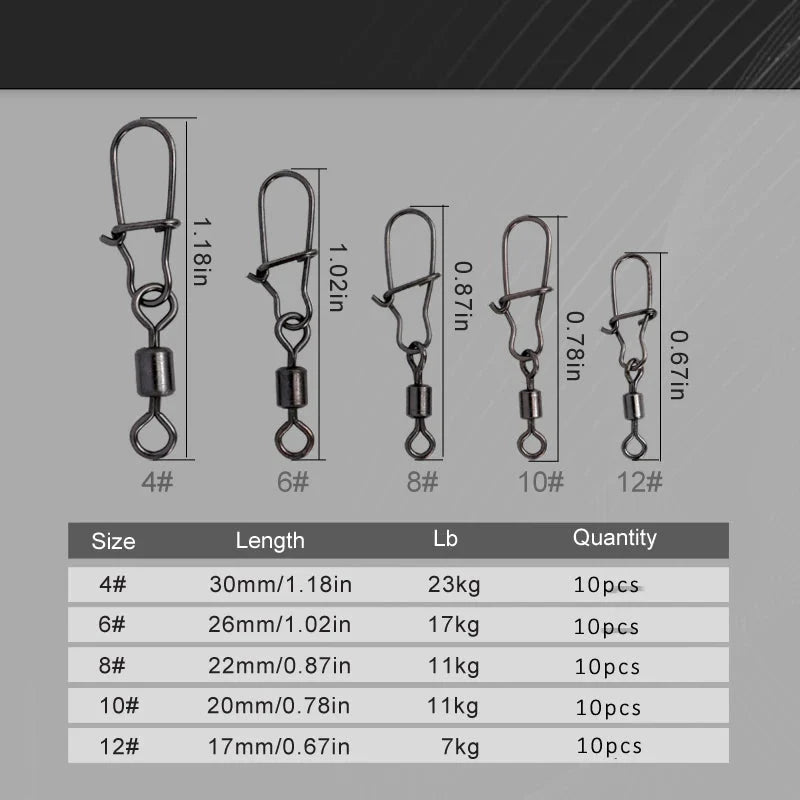 Este conjunto contém 50 pinos conectores de pesca em aço inoxidável com rolamentos giratórios de alta qualidade.