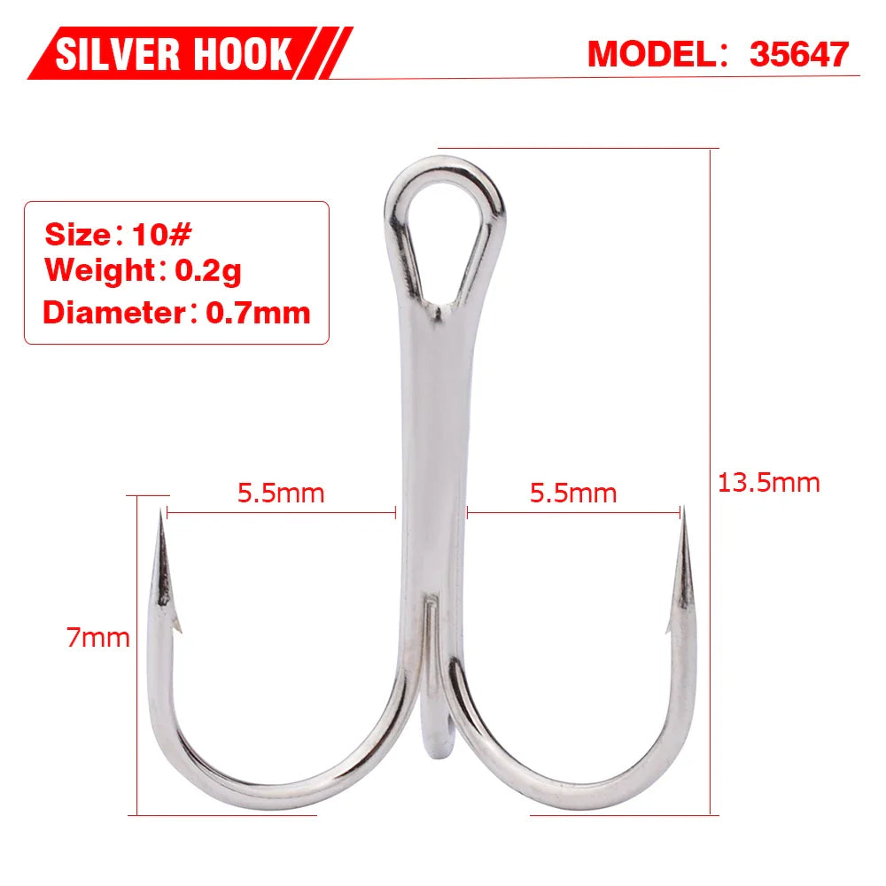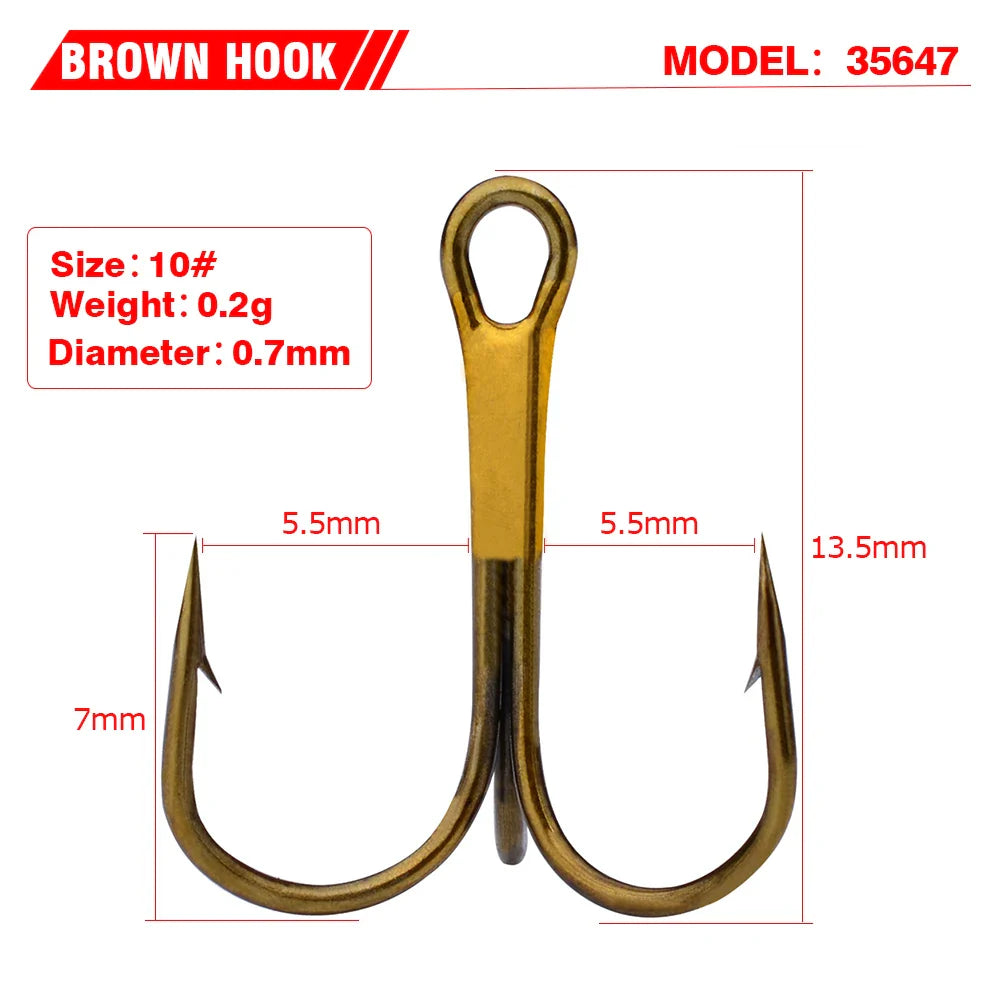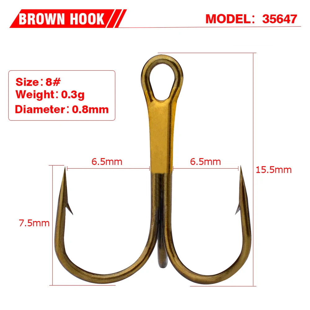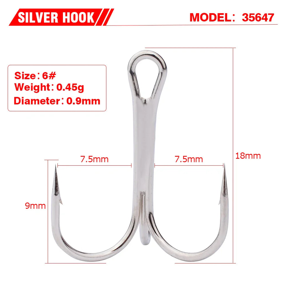 Os anzóis triplos PROBEROS são fabricados em aço de alto carbono para máxima resistência e penetração.