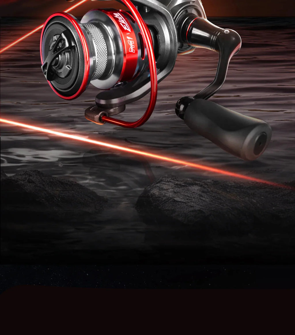 Equipado com 9+1 rolamentos resistentes à corrosão e corpo em grafite, oferece estabilidade, precisão e conforto.