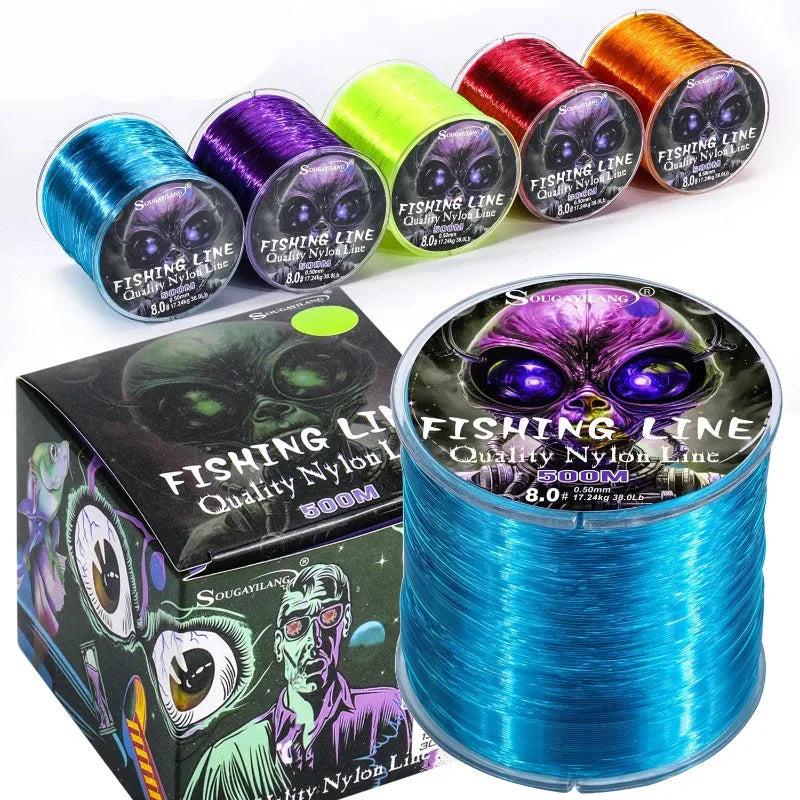 Linha de pesca Sougayilang de 500m em nylon, ideal para água doce e salgada.
