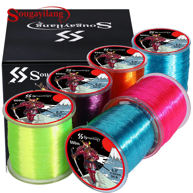 Linha de pesca Sougayilang de 500m, fabricada com material japonês e revestimento triplo de fluorocarbono.
