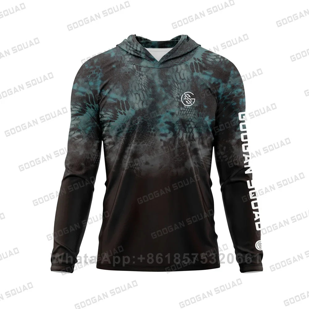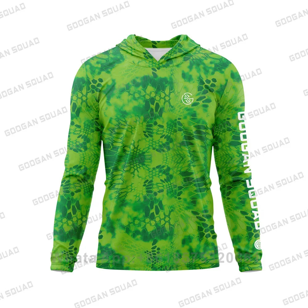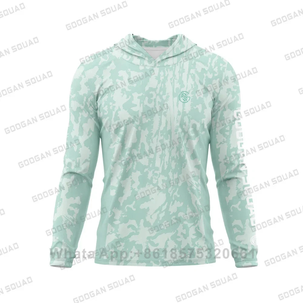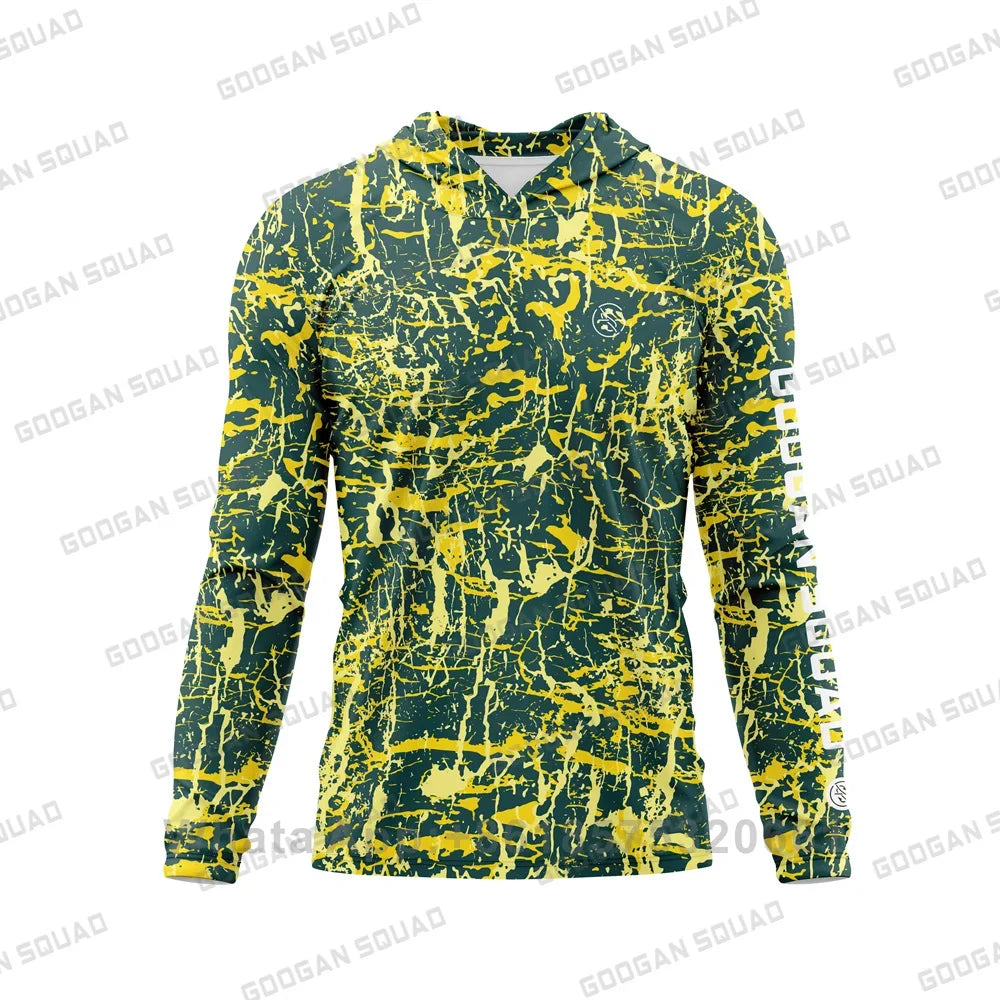 Camisa de pesca com capuz da Googan Squad, confeccionada com tecido técnico ultraleve e 100% poliéster reciclado.