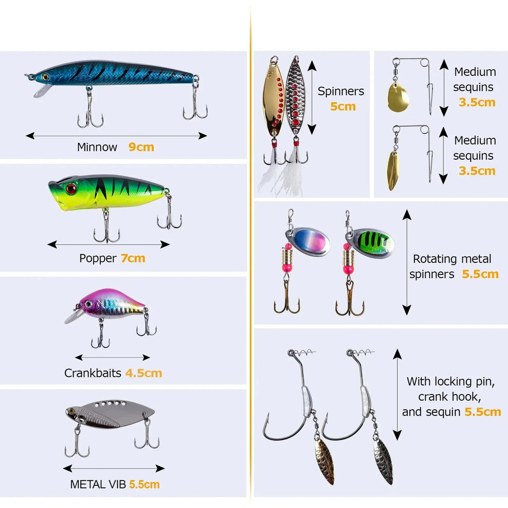 Uma solução completa para pescadores iniciantes ou experientes, tudo em uma caixa compacta para fácil transporte.