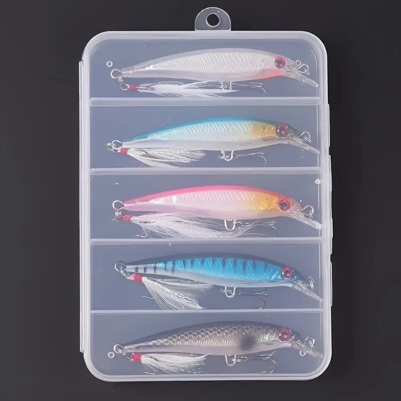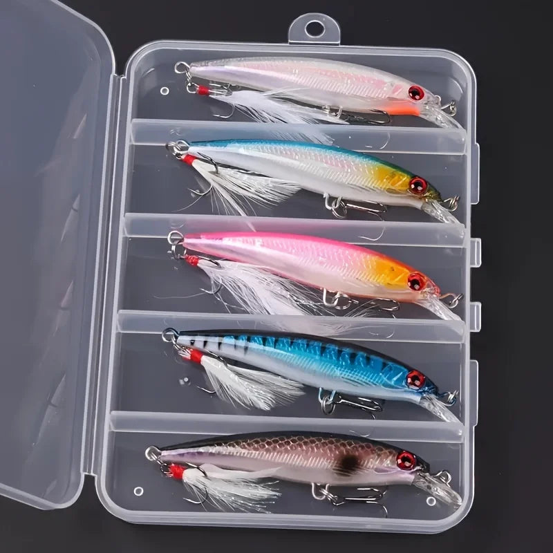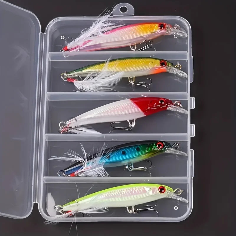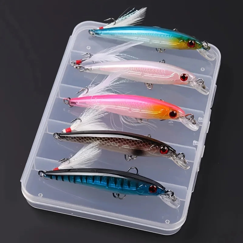 Isca artificial rígida tipo minnow biônica de 9 cm e 6,5 g com anzol afiado e emplumado.