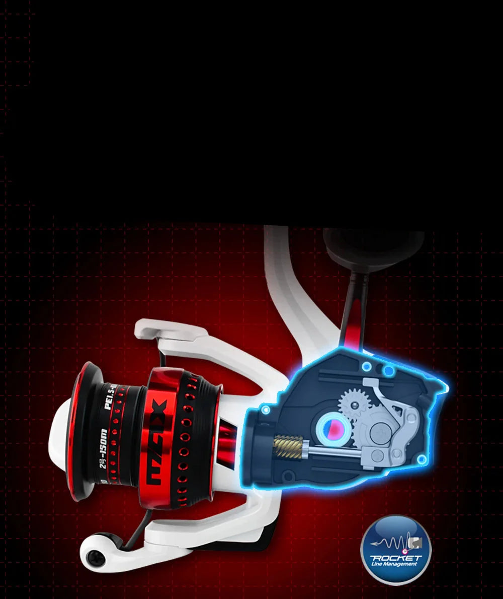Com o sistema de gerenciamento de linha Rocket e uma relação de transmissão de 6.2:1, este molinete de spinning proporciona arremessos mais longos e precisos.